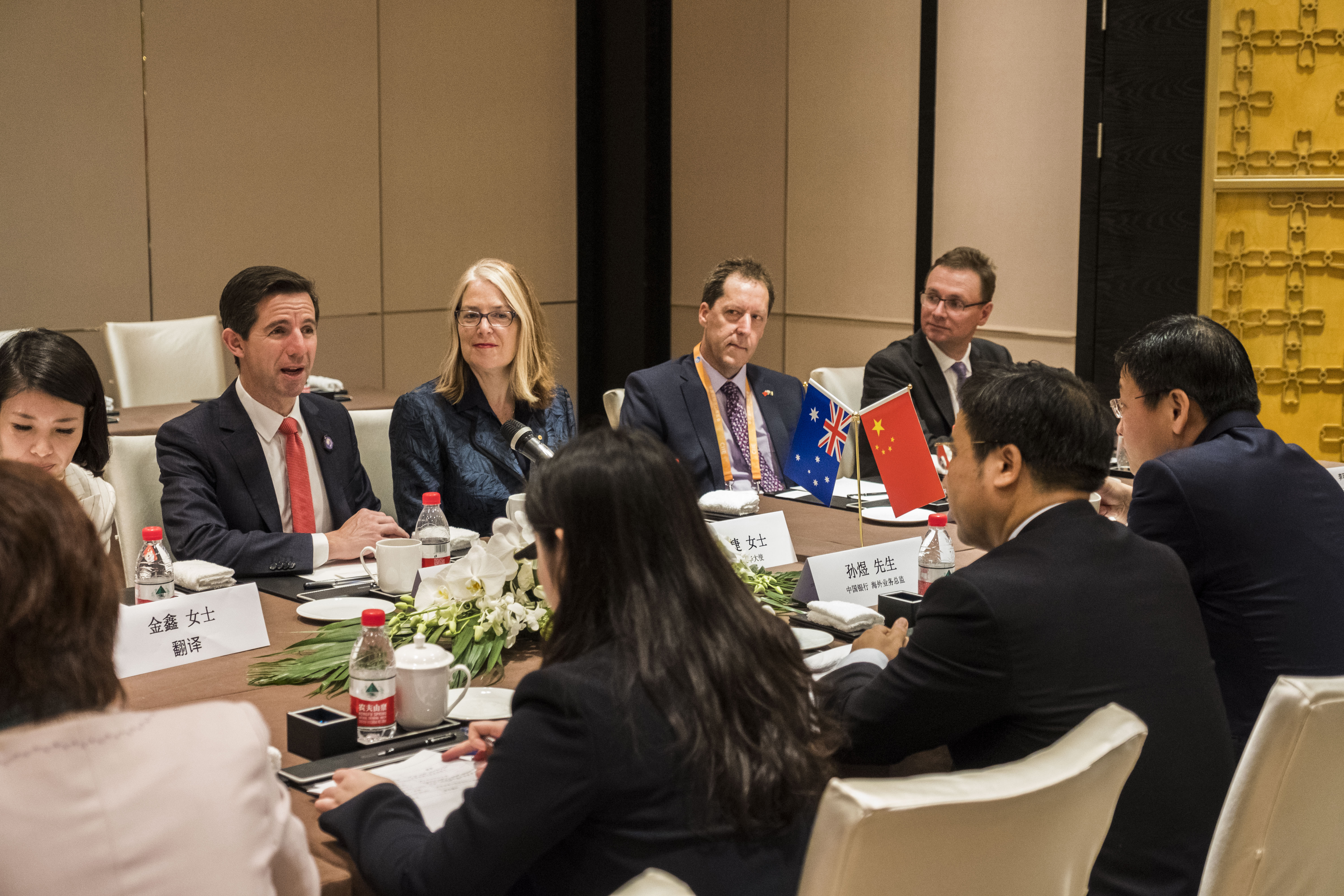 Federal Minister for Trade, Tourism & Investment Simon Birmingham meeting with representatives from Bank of China. Photo credit: DFAT/Chris Crerar.