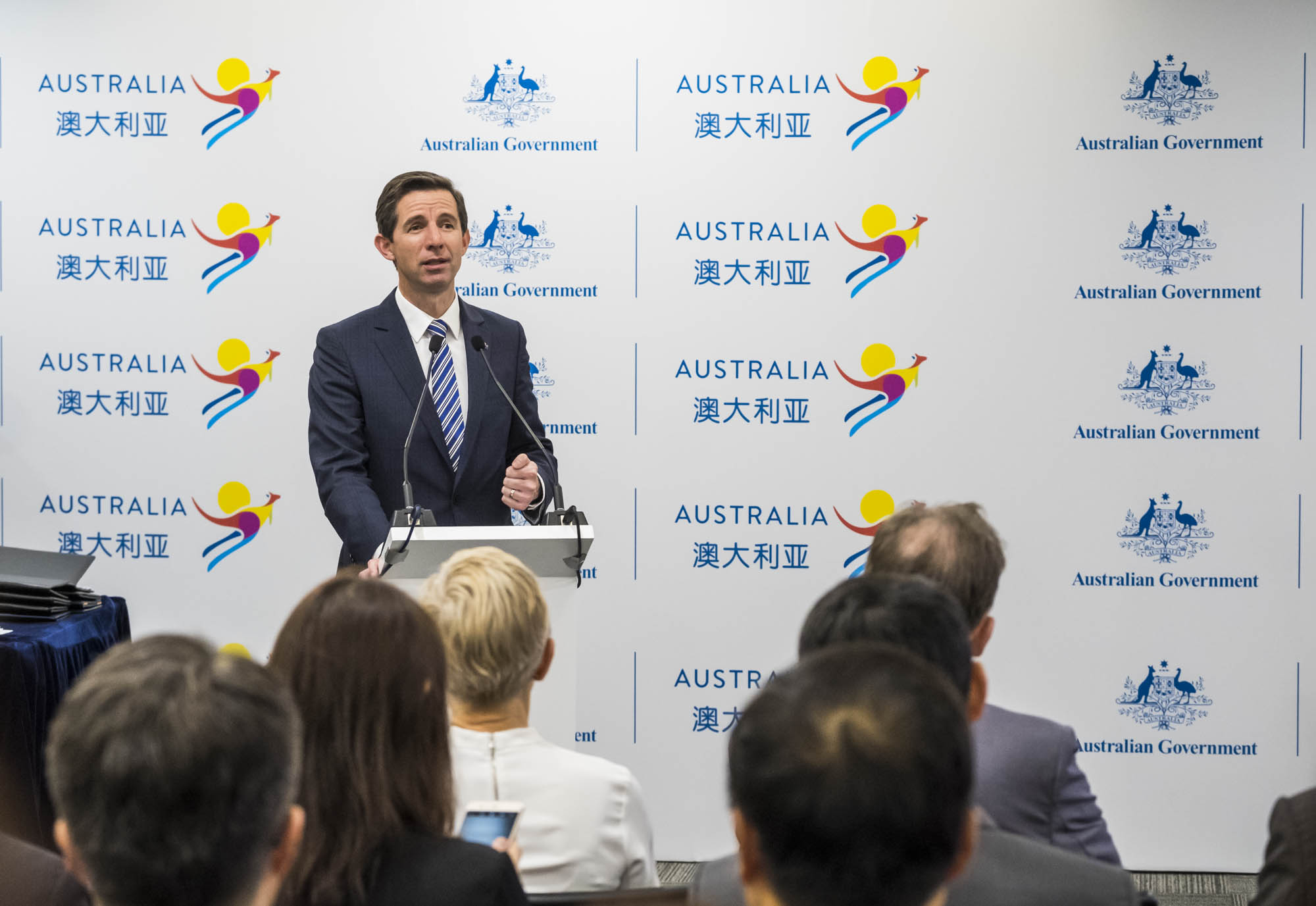 Federal Minister for Trade, Tourism & Investment Simon Birmingham speaks at the MOU signing ceremony during the first China International Import Expo in Shanghai. Photo credit: DFAT/Chris Crerar.