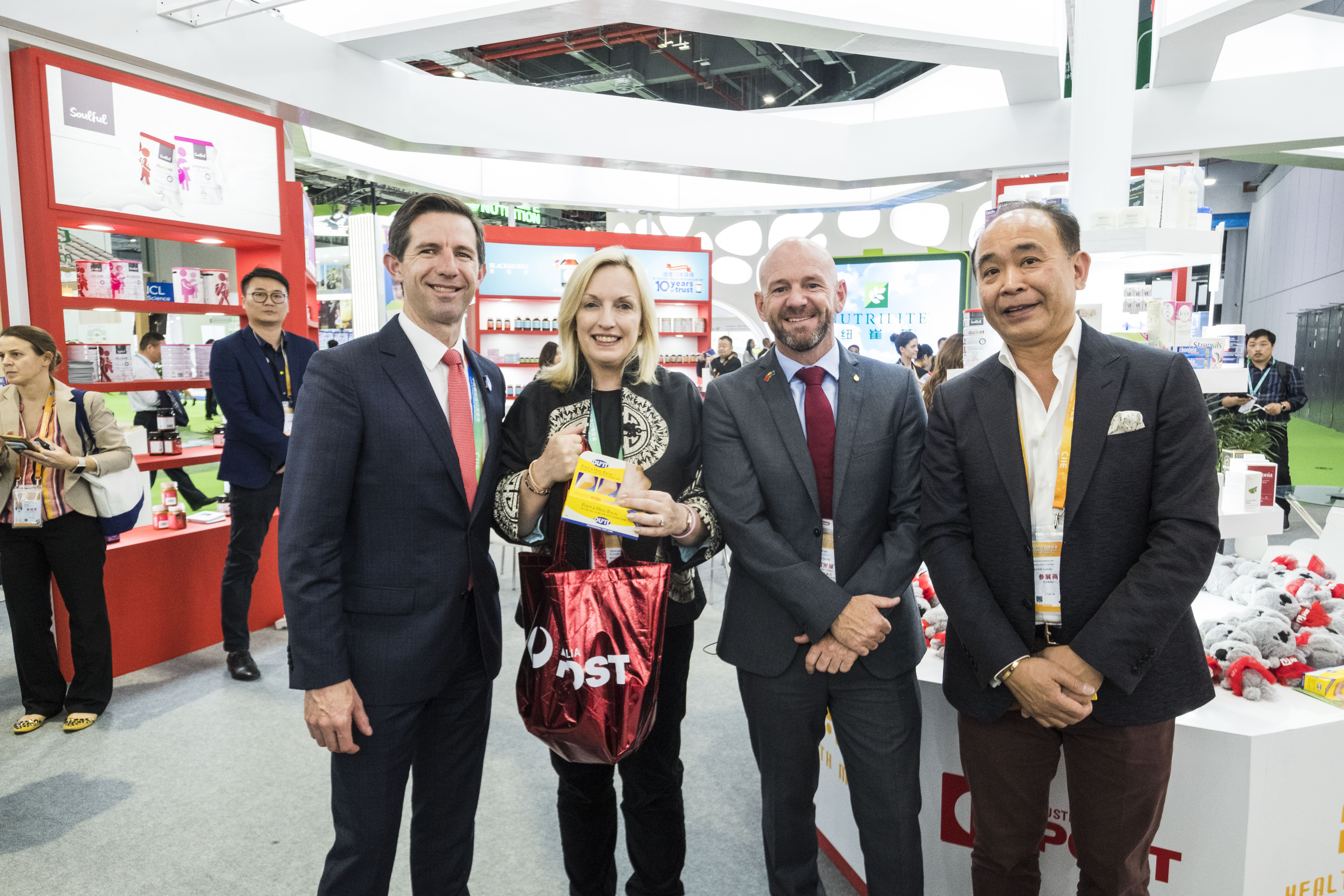 Federal Minister for Trade, Tourism & Investment Simon Birmingham with Australia Post CEO Christine Holgate, NSW Minister for Trade and Industry Niall Blair and Pynith Char, CEO of Orbis Australasia. Photo credit: DFAT/Chris Crerar.