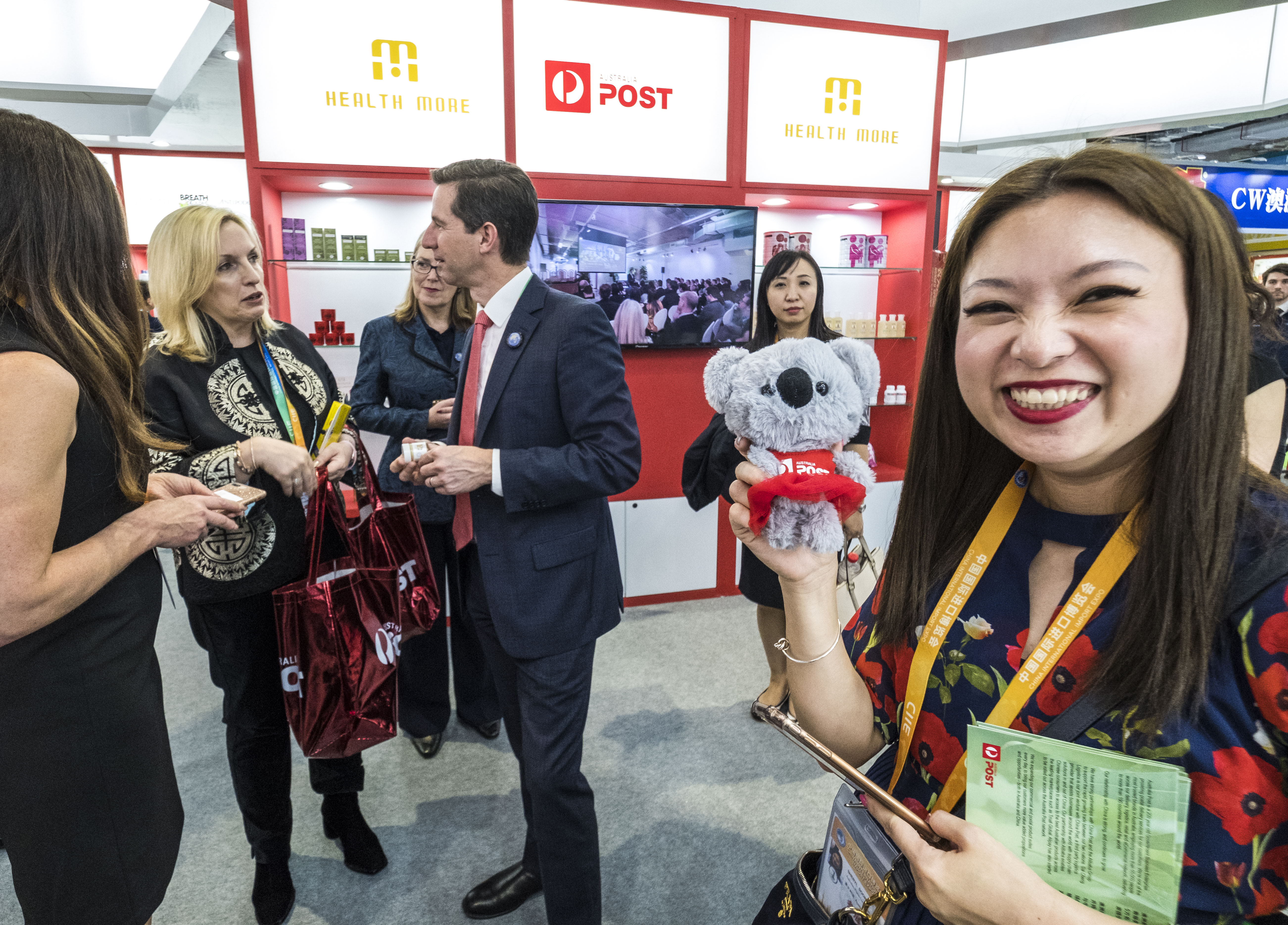 Federal Minister for Trade, Tourism & Investment Simon Birmingham with Christine Holgate and Sheryl Soon of Australia Post. Photo credit: DFAT/Chris Crerar.