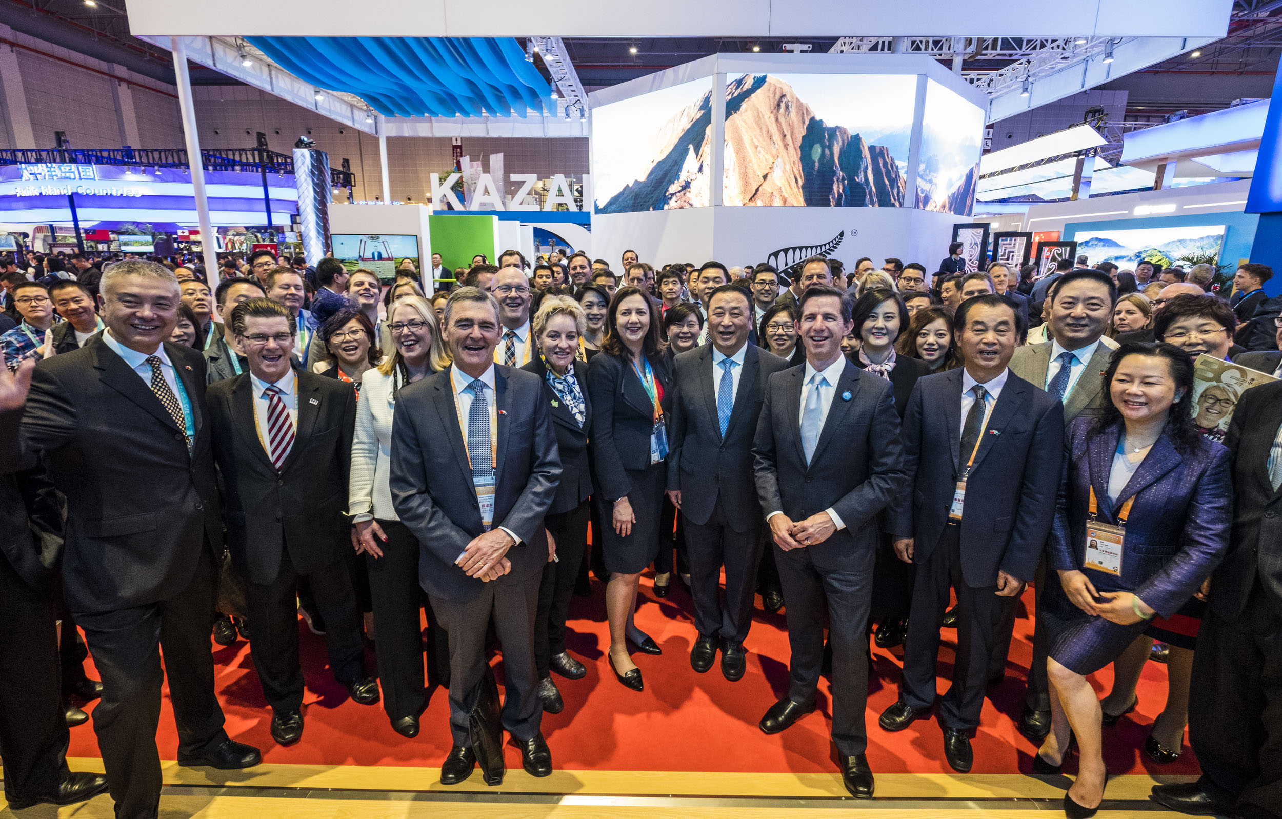 Federal Minister for Trade, Tourism & Investment Simon Birmingham with representatives from Australian and Chinese business at the opening of the Australia Pavilion at the China International Import Expo. Photo credit: DFAT/Chris Crerar.