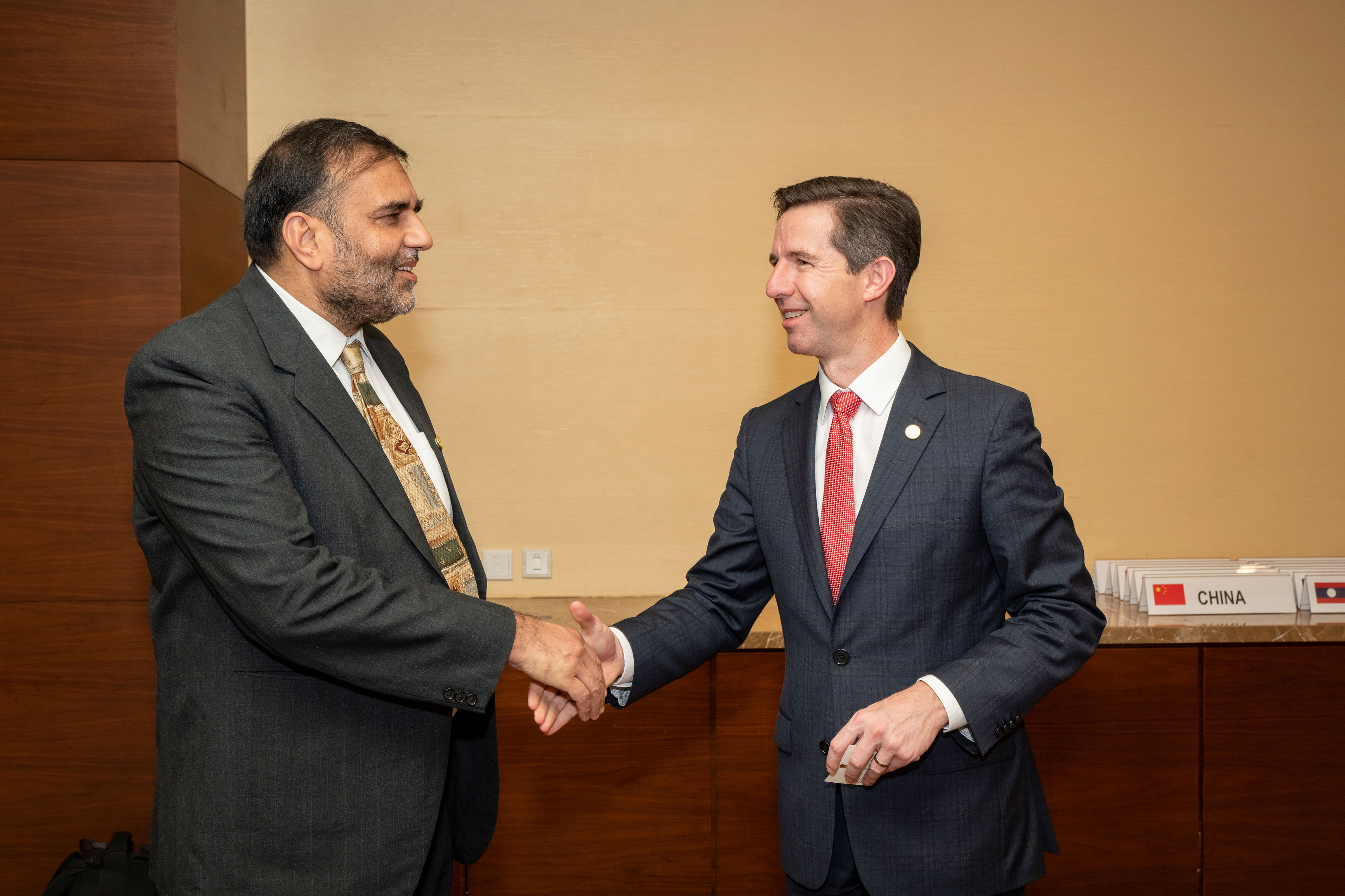 Federal Minister for Trade, Tourism & Investment Simon Birmingham meets with Dr Anup Wadhawan, Commerce Secretary, India, during the RCEP bilateral meetings. Photo credit: DFAT/Aurélien Foucault.