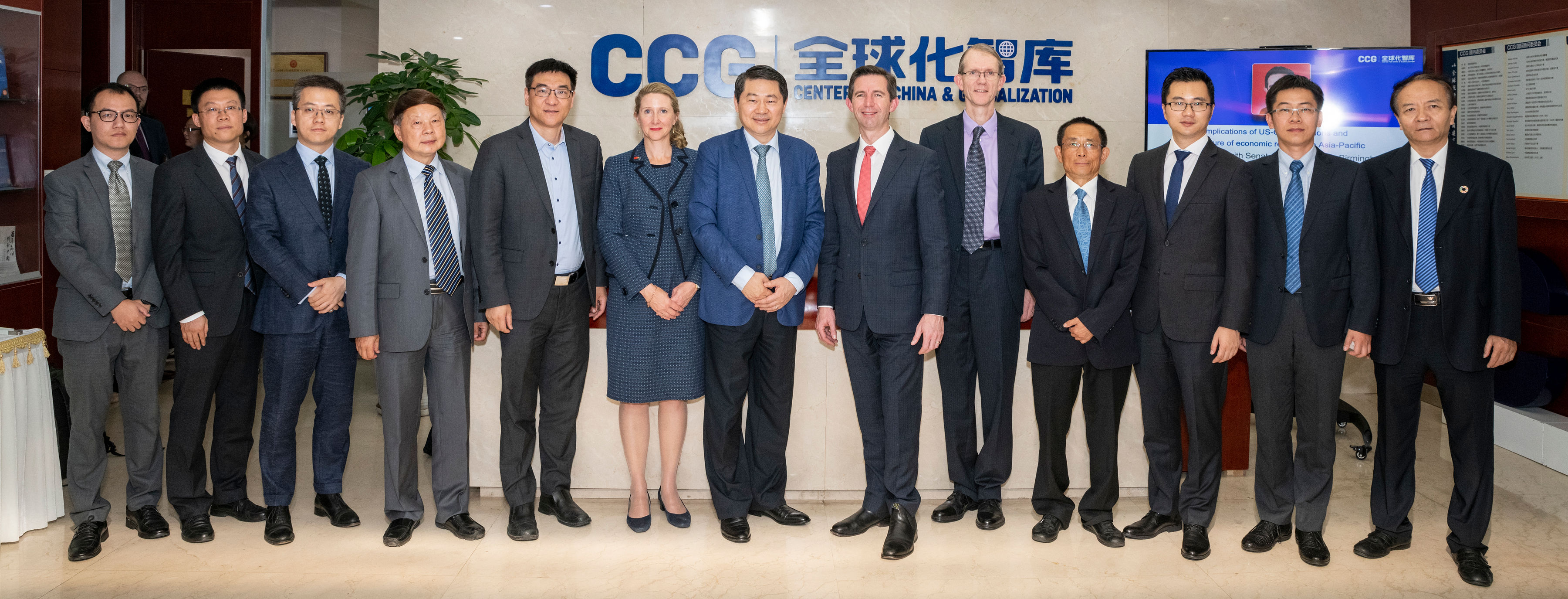 Federal Minister for Trade, Tourism & Investment Simon Birmingham and Australian Ambassador to China Graham Fletcher with Dr Wang Yaohui, President of the Center for China and Globalization at the Center in Beijing. Photo credit: DFAT/Aurélien Foucault.