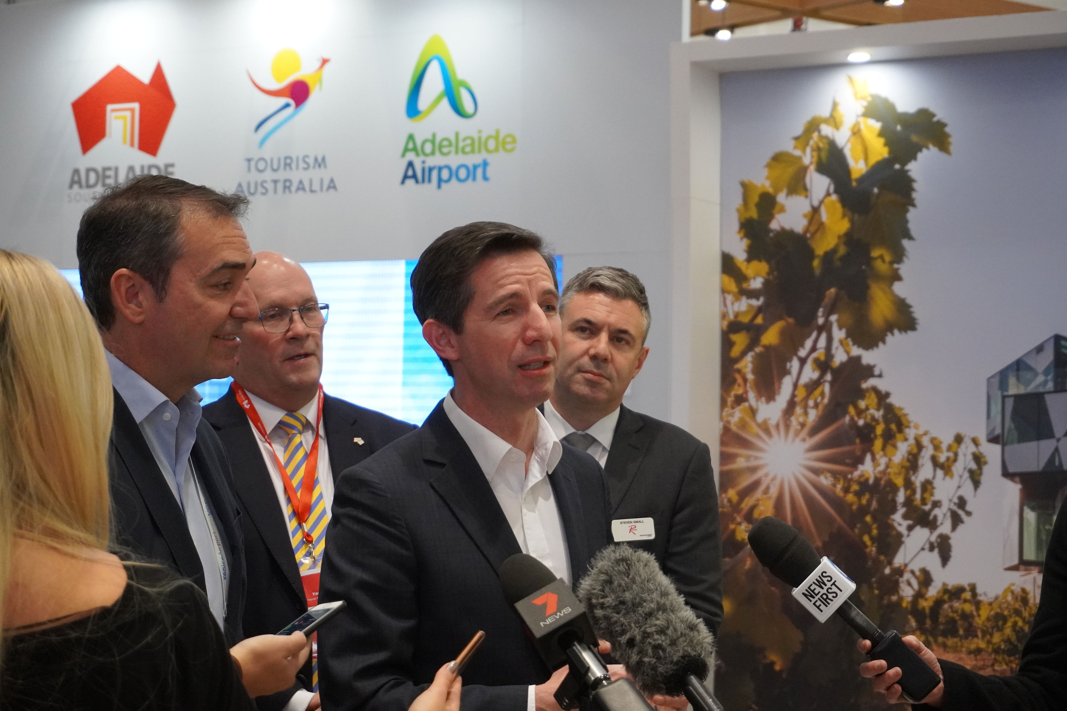 TTI Minister Simon Birmingham holding a press conference with South Australian Premier Steven Marshall. Photo Credit: TTIMO.