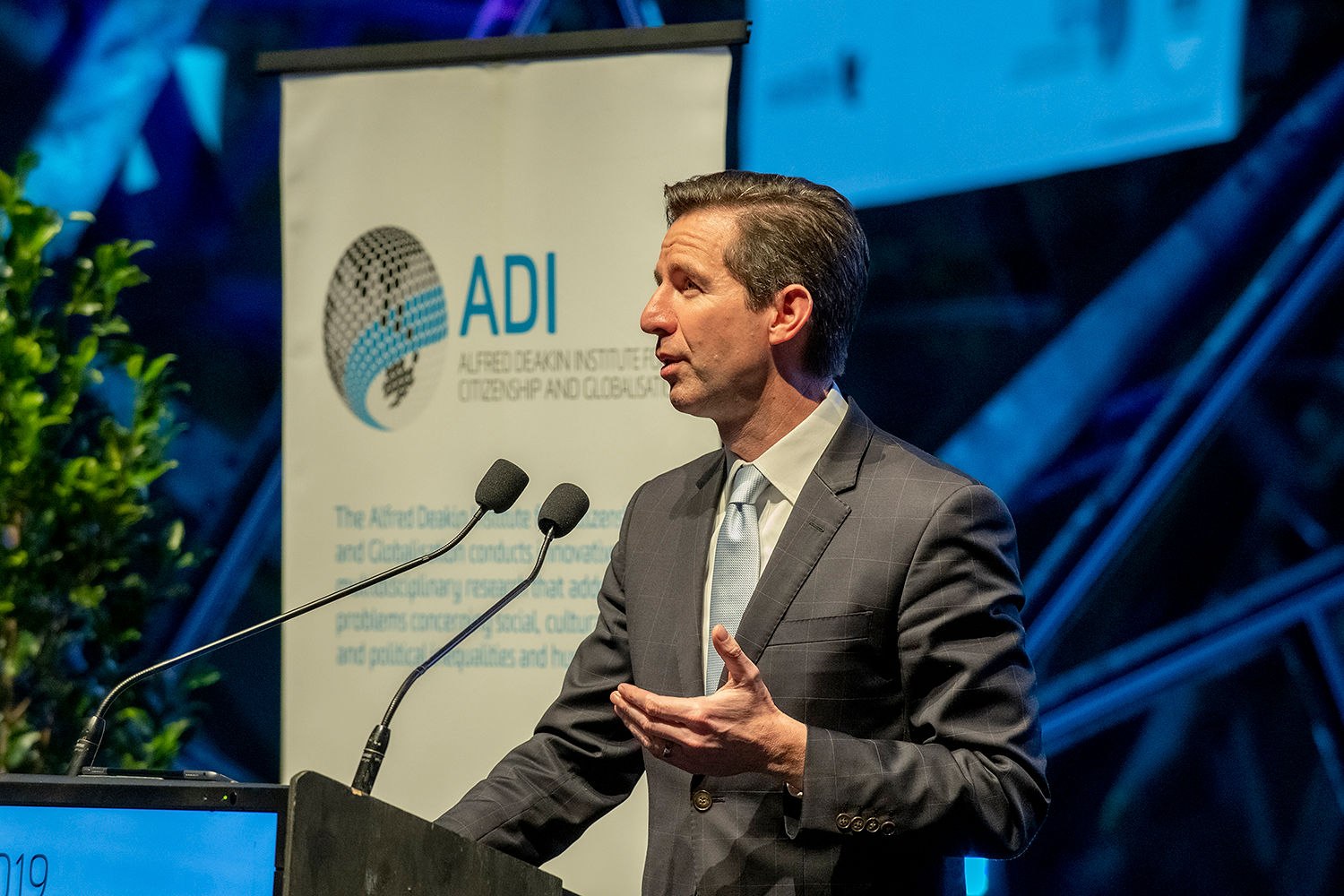 TTI Minister Birmingham delivering the 2019 Alfred Deakin Institute Oration. Photo Credit: Deakin University.