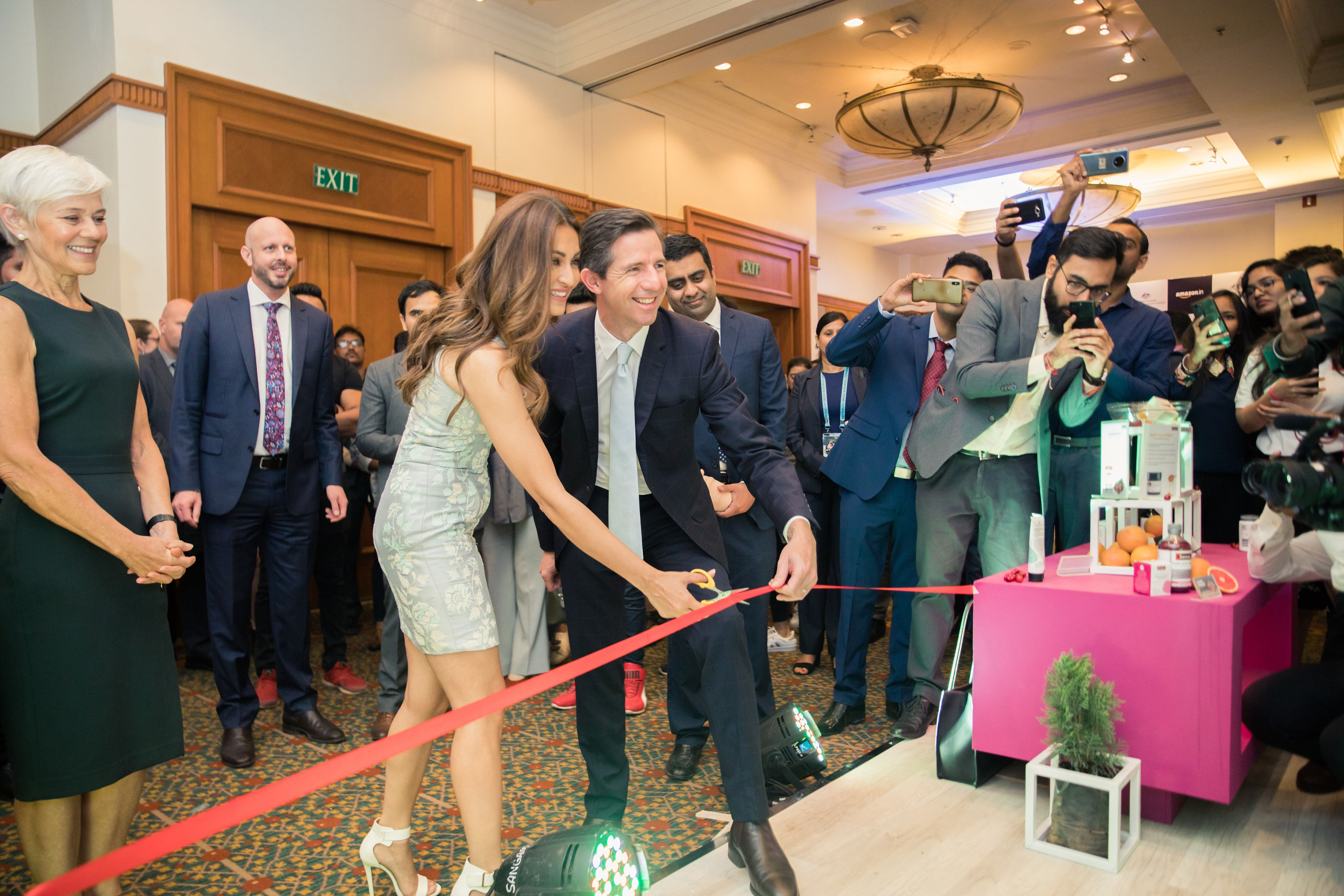 TTI Minister Simon Birmingham launching Amazon India’s online Australia Store with Bollywood actress Kriti Kharbanda. Photo Credit: DFAT.
