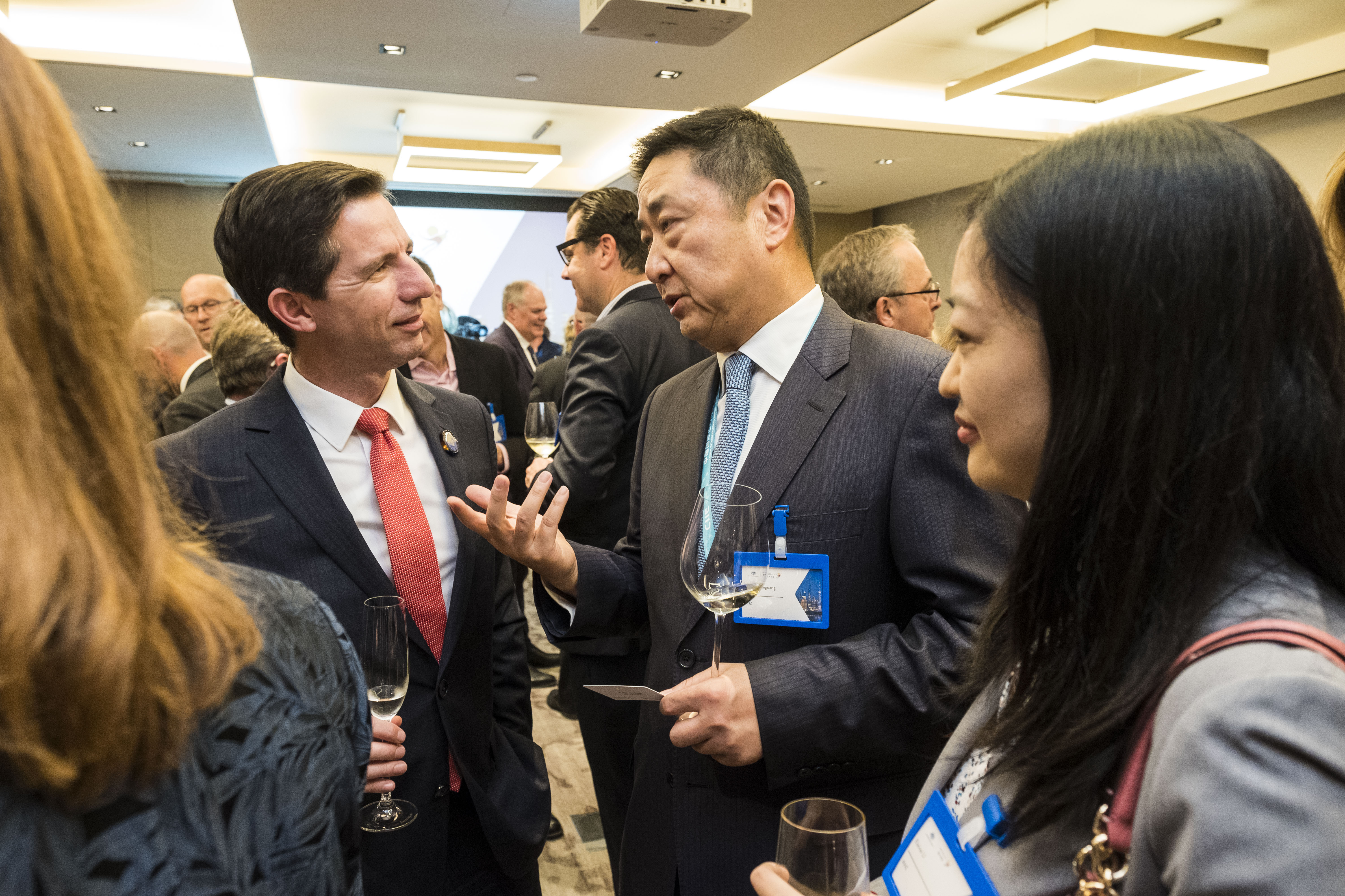 Federal Minister for Trade, Tourism & Investment Simon Birmingham with ANZ China CEO Huang Xiaoguang and Senior Risk Manager Elaine Li. Photo credit: DFAT/Chris Crerar.