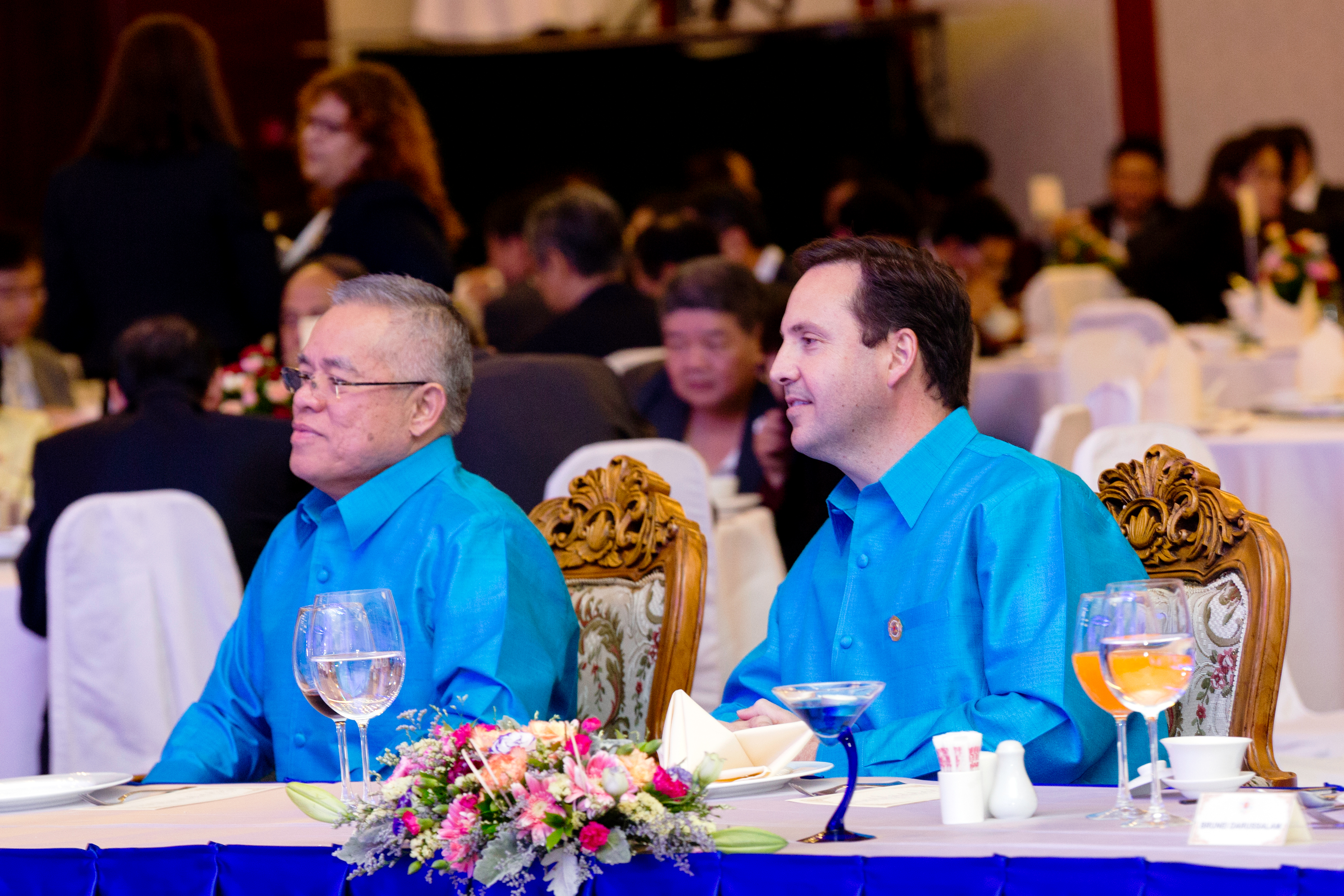 Minister for Trade, Tourism and Investment Steven Ciobo with Philippine Trade and Industry Secretary Ramon Lopez at the 21st ASEAN Economic Ministers’ Meeting Gala Dinner in Vientiane, Laos. 5 August 2016. Photo credit: DFAT/Bart Verweij