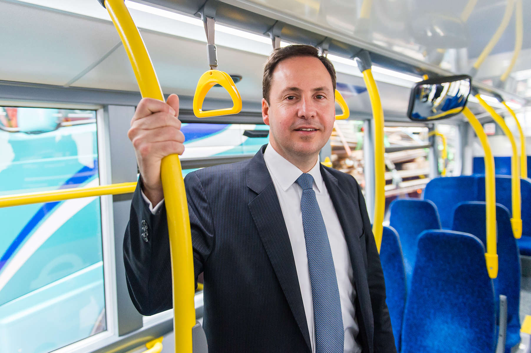 Minister for Trade, Tourism and Investment, Steven Ciobo, on one of Tower Transit’s iconic double decker buses in London. Tower Transit is an Australian-owned company.