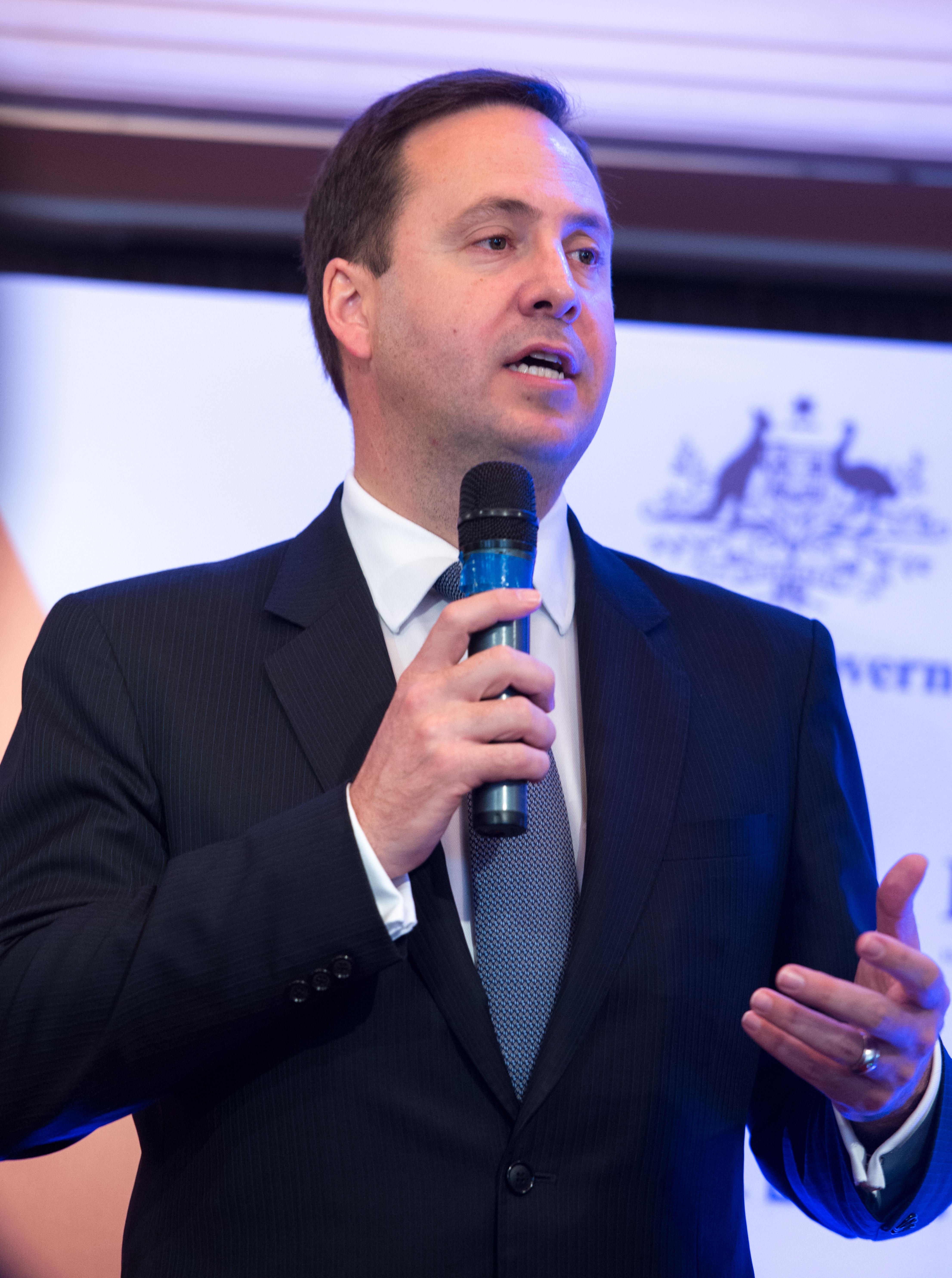 Trade, Tourism and Investment Minister Steven Ciobo speaks at the launch of official negotiations for an Australia-Hong Kong Free Trade Agreement in Hong Kong.