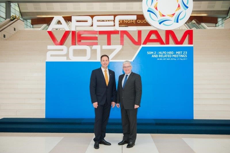 Minister for Trade, Tourism and Investment, the Hon Steven Ciobo MP with Australian Ambassador to Vietnam, HE Mr Craig Chittick, Hanoi, May 2017.