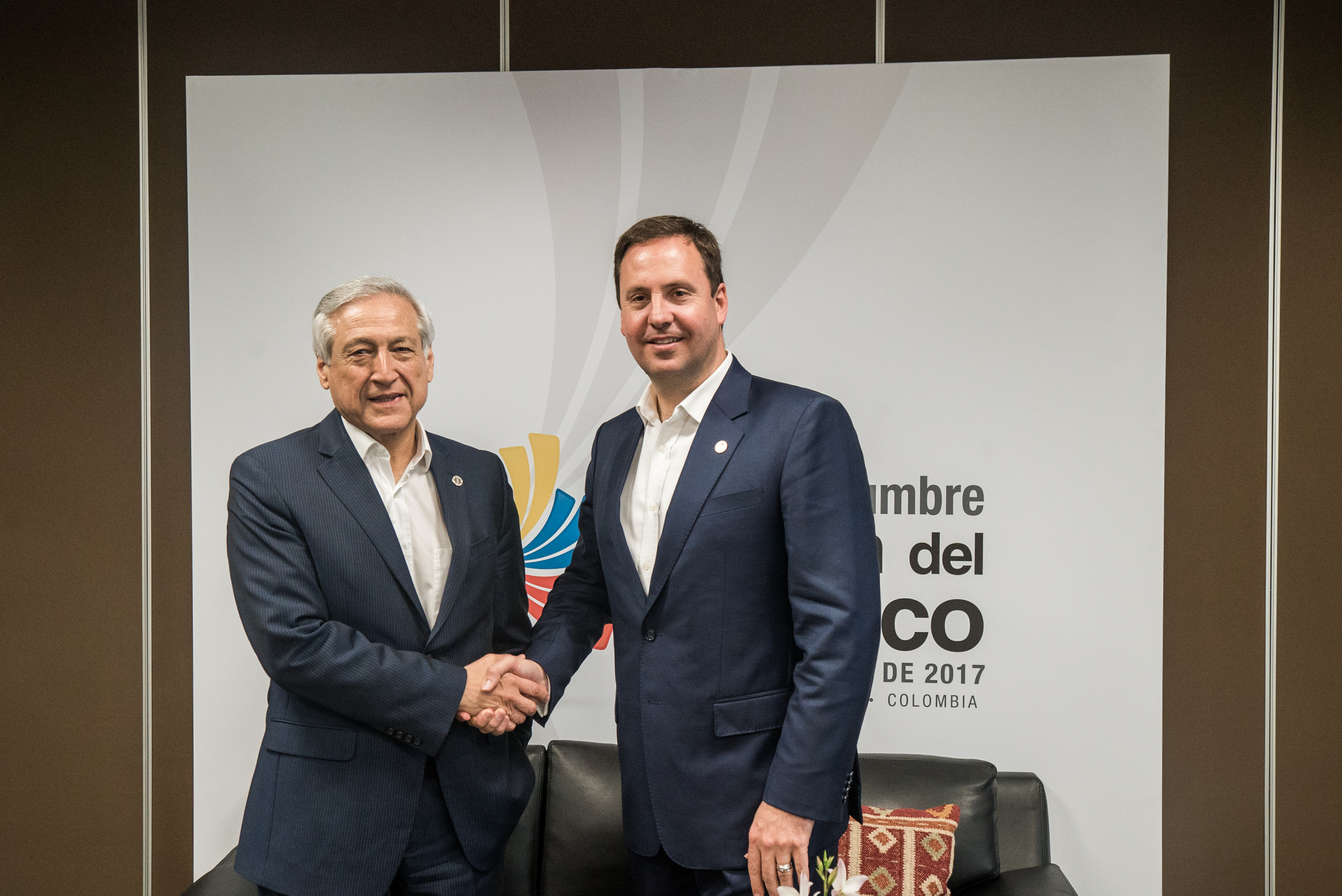 Minister for Trade, Tourism and Investment, the Hon Steven Ciobo MP, meeting Chilean Foreign Minister, Heraldo Muñoz, during the XII Pacific Alliance Summit in Cali, Colombia on 29 June 2017. Photo credit: DFAT/David García