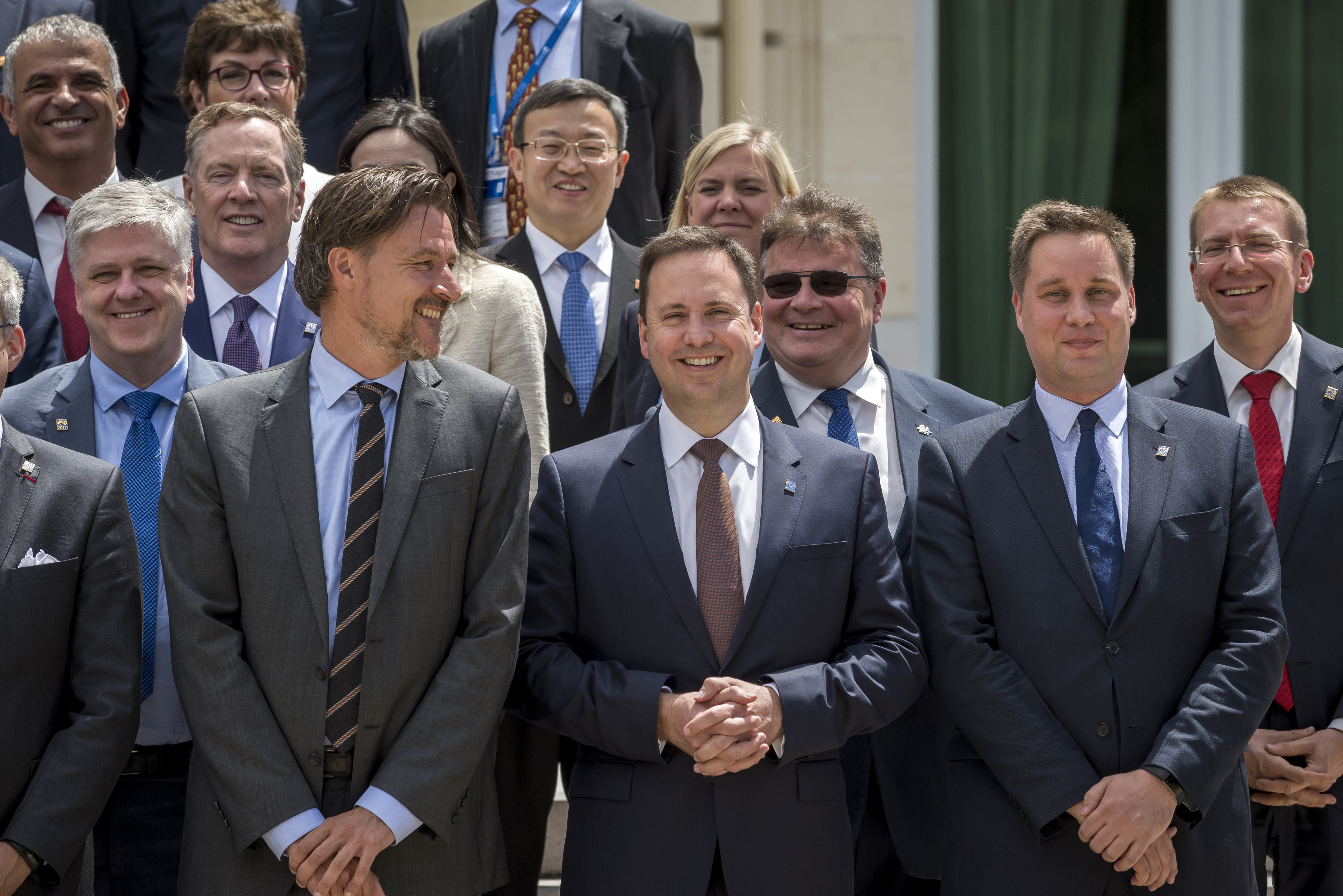 Trade, Tourism and Investment Minister, Steven Ciobo with the participants of the OECD Ministerial Council Meeting 2017 UK Ambassador to the OECD Christopher Sharrock (r) and the Danish Permanent Secretary of Foreign Affairs, Ulrik Vestergaard (l).