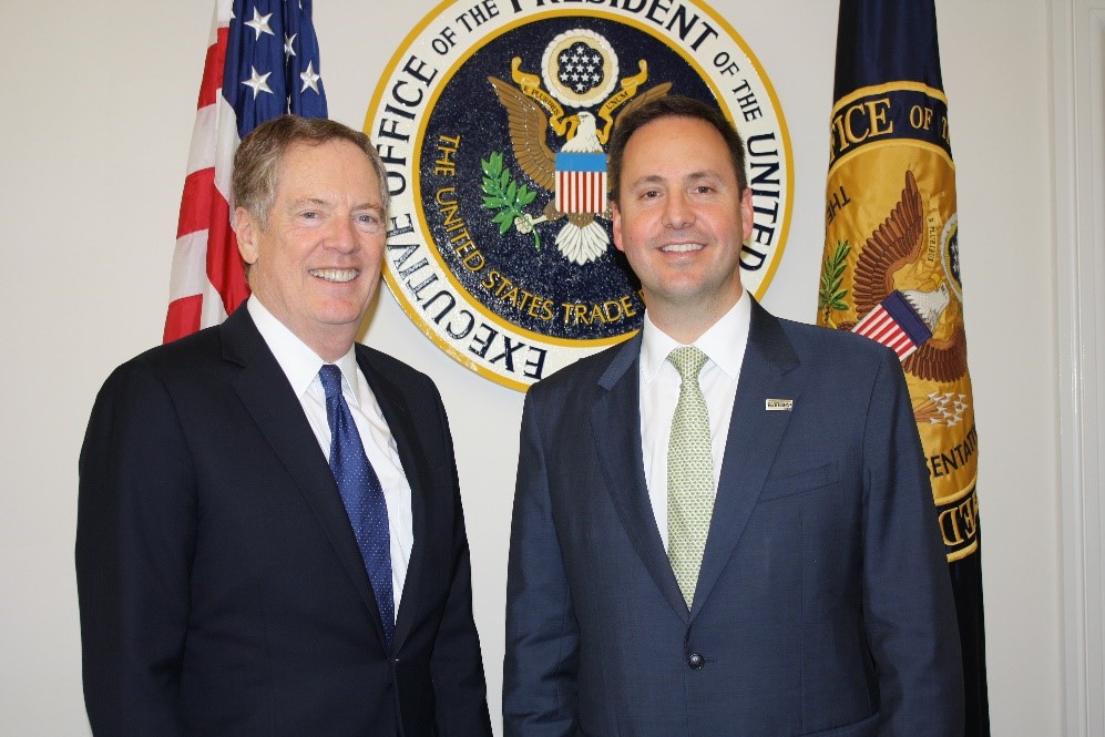 Australian Trade, Tourism and Investment Minister Steven Ciobo and United States Trade Representative Robert Lighthizer in Washington DC on N5 October 2017.