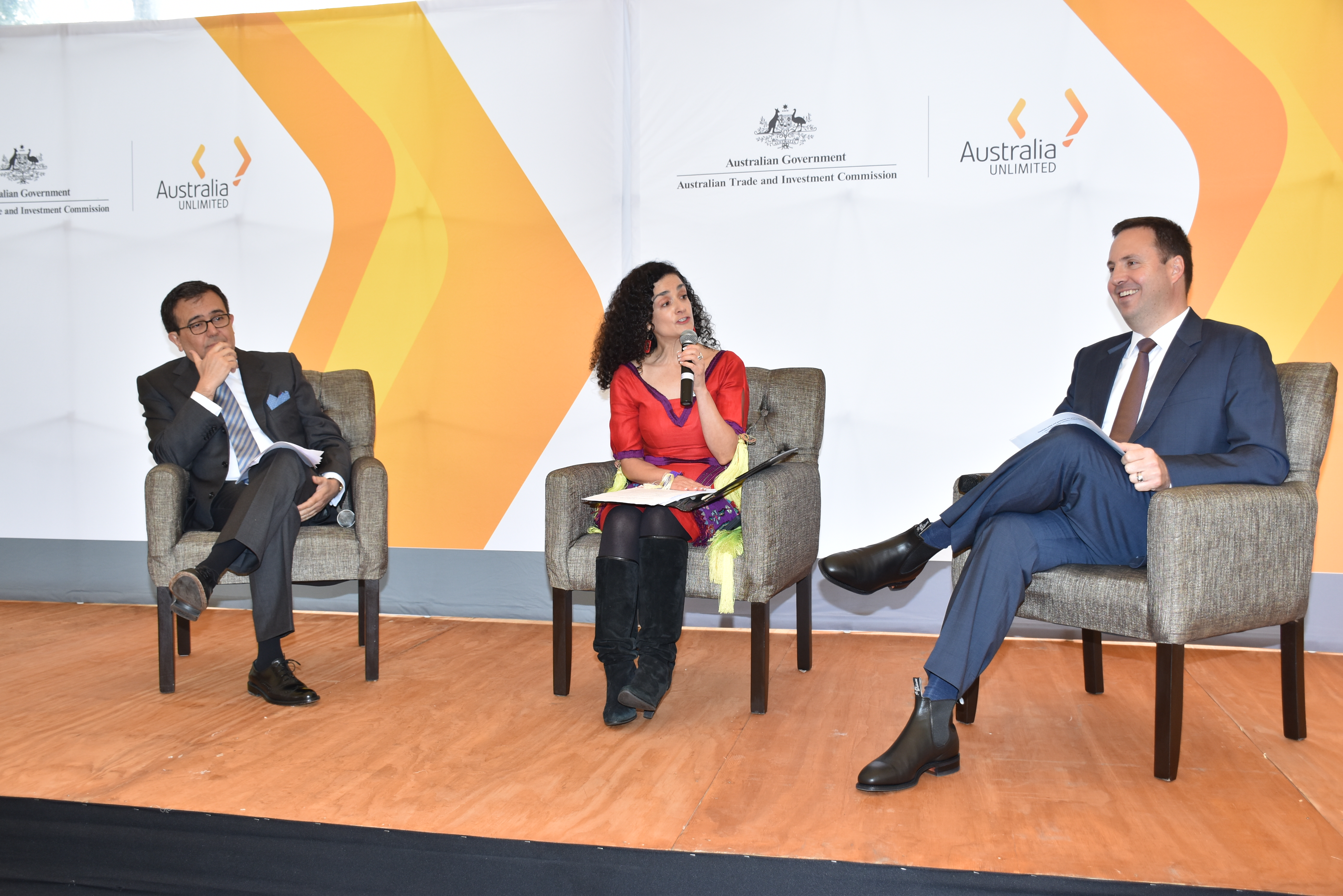 Minister of Economy, Ildefonso Guajardo Villarreal, Moderator and Trade Expert Beatriz Leycegui, and Minister Ciobo at 'The Future of Trade' breakfast. Photo credit: DFAT/ Hugo Mendez