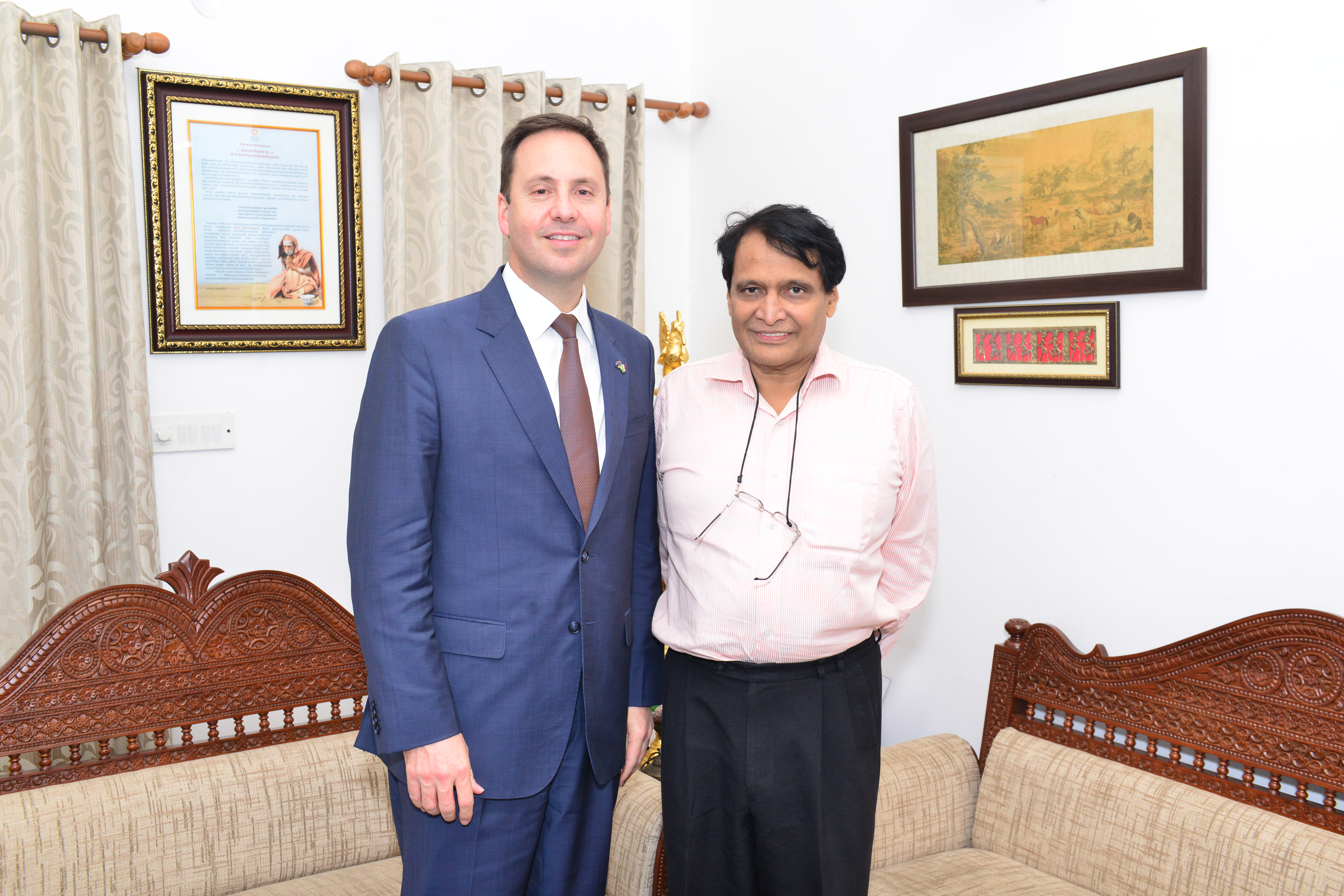 Minister for Trade, Tourism and Investment, the Hon Steven Ciobo MP, meeting India’s then Minister for Railways, Mr Suresh Prabhu, New Delhi, 30 August 2017.