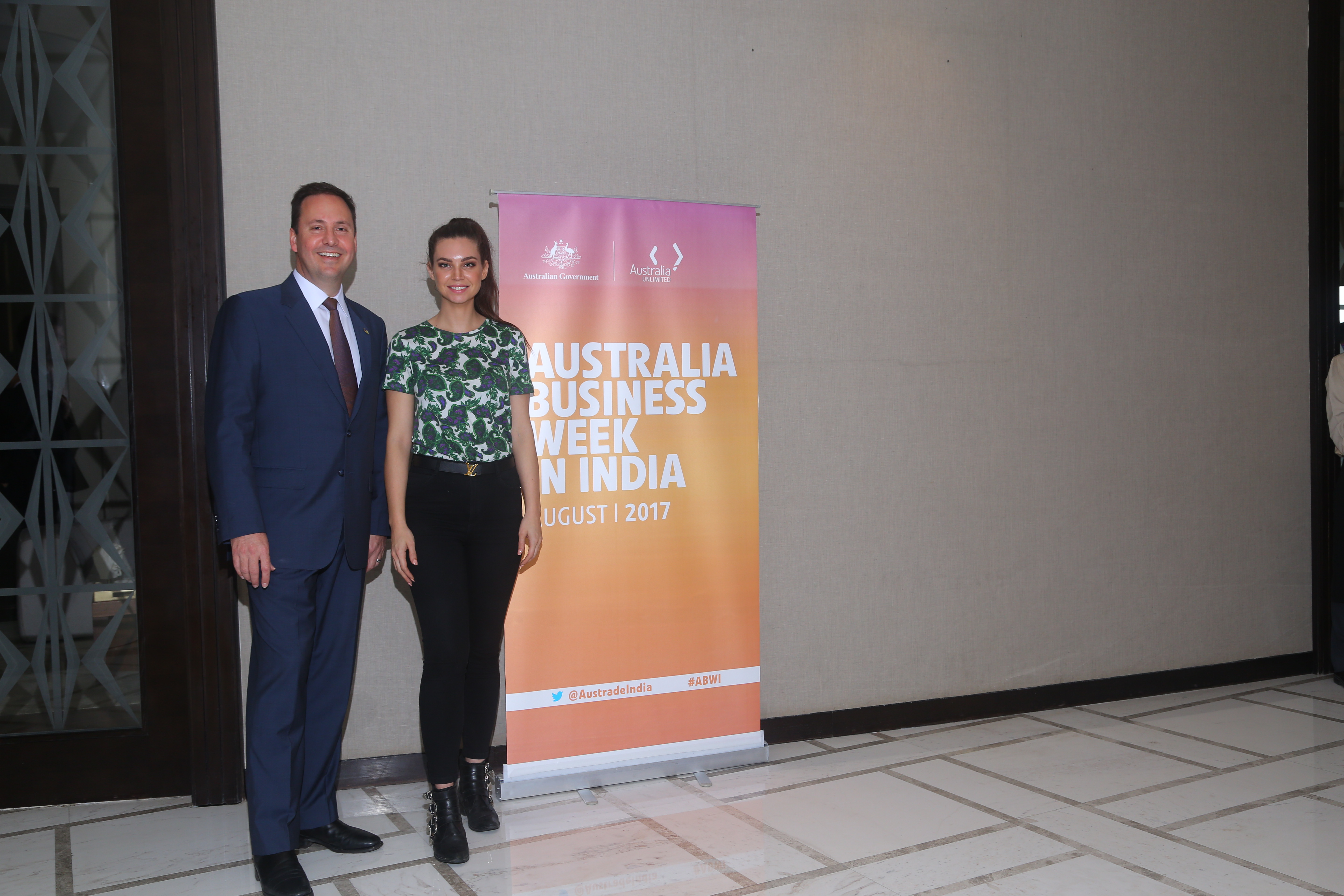 Minister for Trade, Tourism and Investment, the Hon Steven Ciobo MP, meeting former Masterchef contestant Sarah Todd, who has opened a restaurant in India, New Delhi, 30 August 2017.