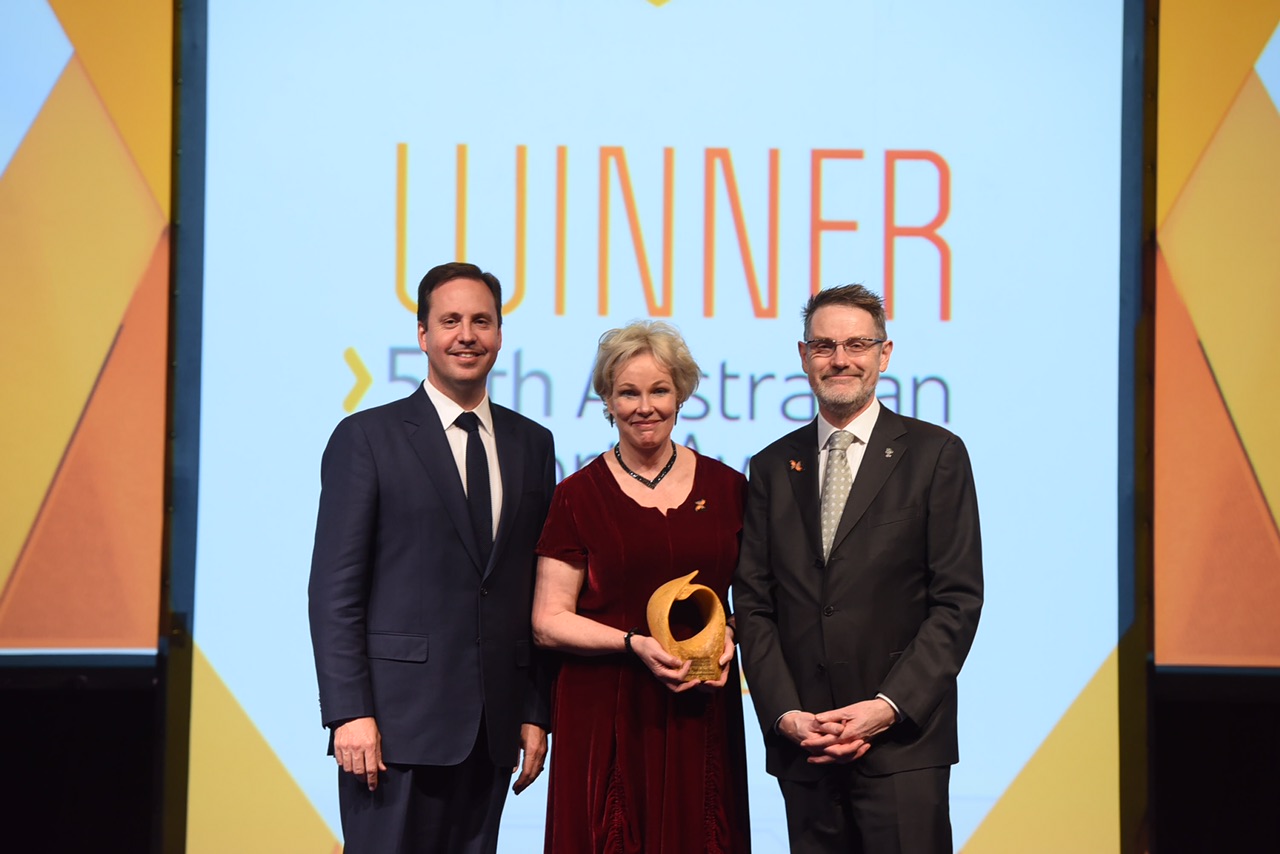 Minister Ciobo with Alan Oppenheim and Dr Jane Oppenheim.