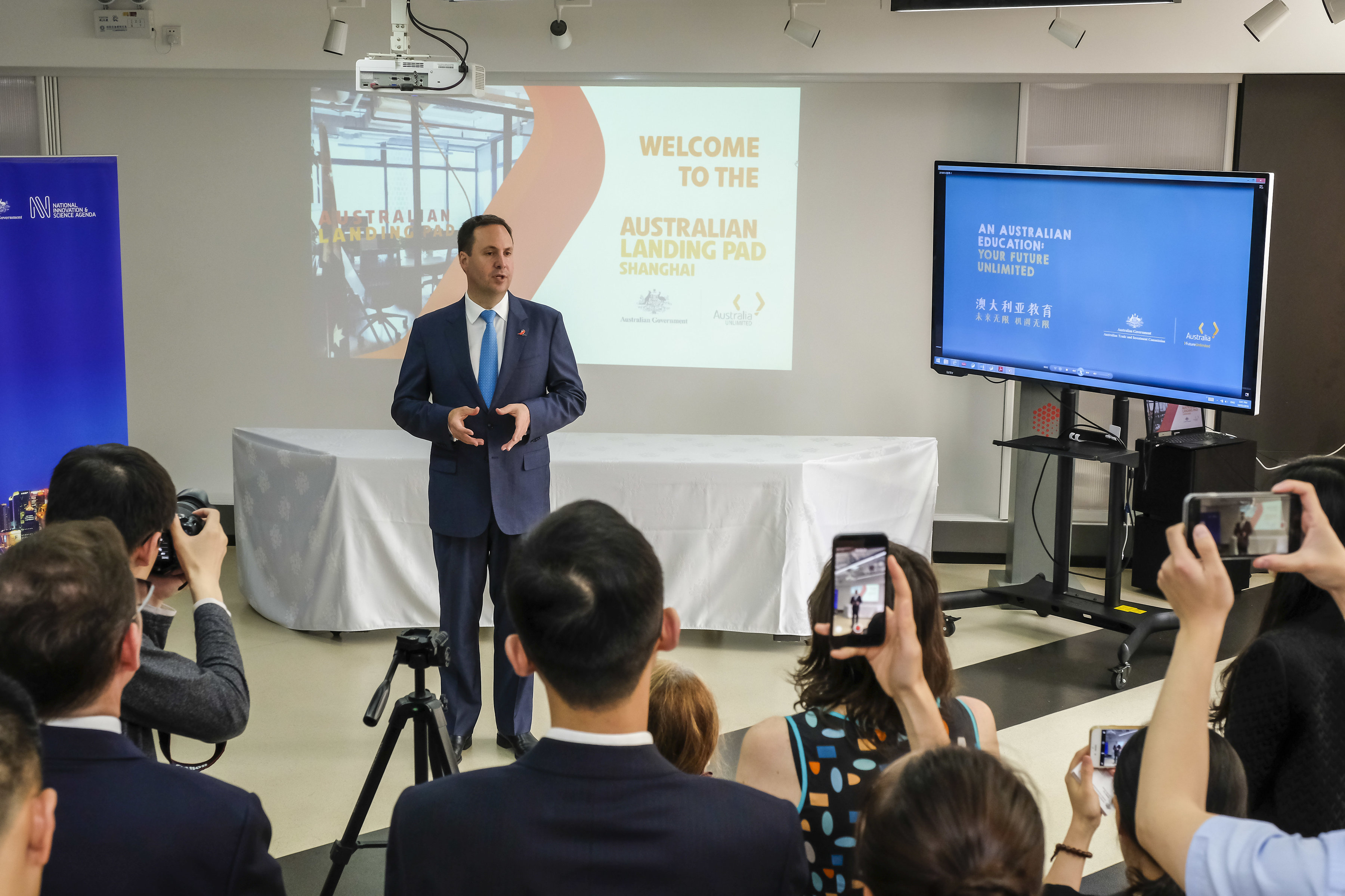 Federal Minister for Trade, Tourism & Investment Steven Ciobo speaking at the Shanghai Landing Pad to launch the “Australia China Career Success Social Media Campaign”.