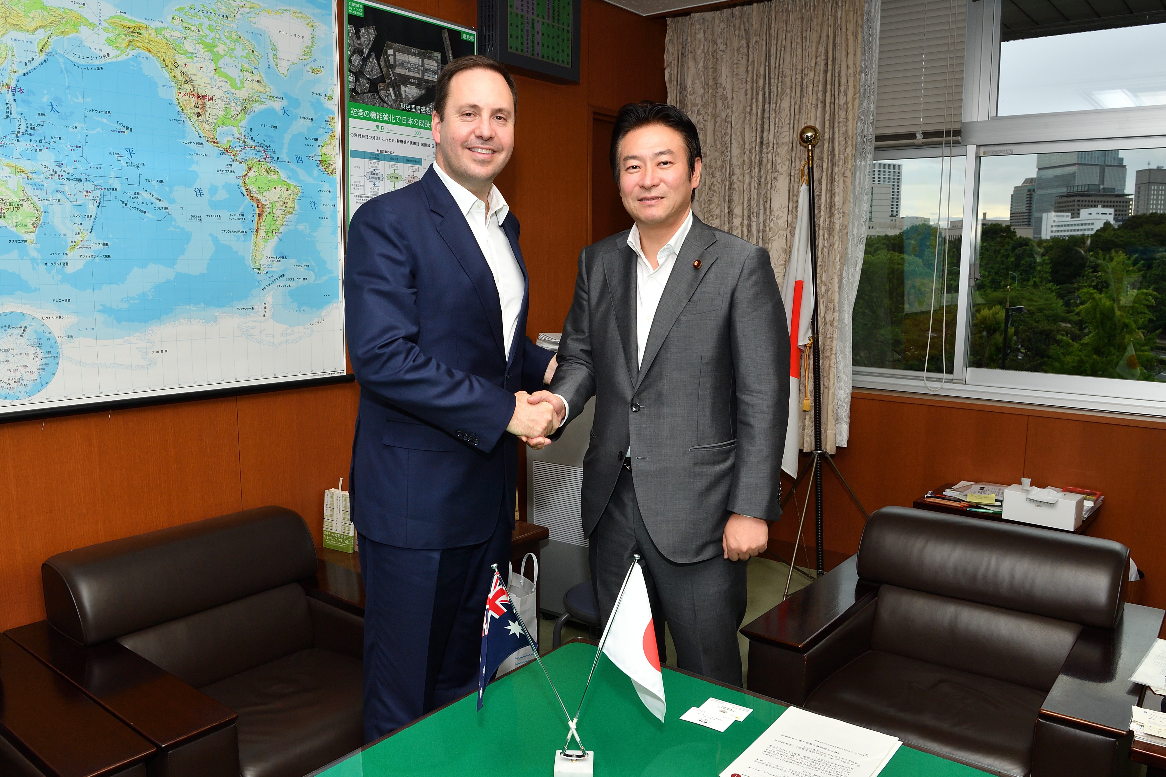 Minister for Trade, Tourism and Investment, Steven Ciobo with State Minister of Land, Infrastructure, Transport and Tourism, Mr Tsukasa Akimoto. Tokyo, 5 July 2018. Credit: DFAT/Ken Katsurayama.